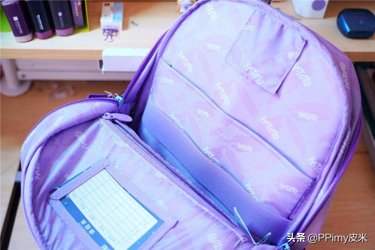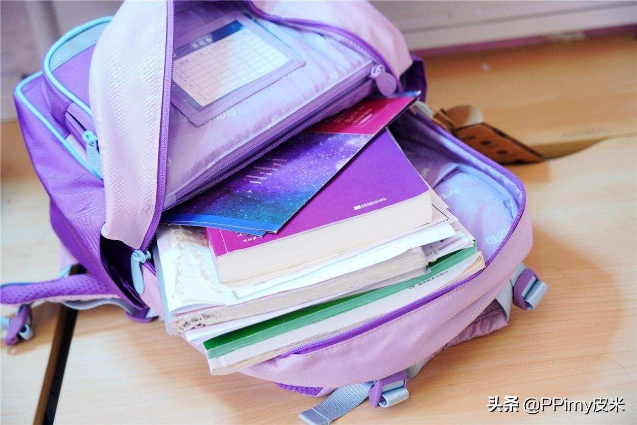 【内部空间】22L,1-3年级的孩子足够了,纸巾、衣服、文具、课本,等等都有问题。上学就是书包。出去游玩就是旅行包,一包多用,哈哈!书包内部还贴心地设计了课程表,而且内部还分为了多个收纳处,可以让小宝宝自己学着收纳,毕竟自己的事情要自己动手才可以。书包中间有弹力固定带,主要就是来固定课本的,课本不会来回晃动。