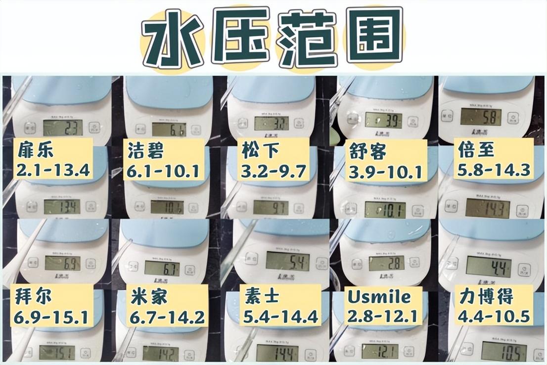 跨度8g以上:Usmile、素士、拜尔(素士、拜尔的低水压仍然偏高)