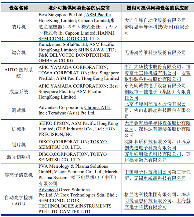 在通富微电(002156.SZ)2021年底披露的《非公开发行股票申请文件的反馈意见的回复》中,通富微电列举了封测领域各环节所需的设备,以及相对应设备的供应商,在键合机上,奥特维成为入选的“国内可提供同类设备的供应商”。奥特维也因此收获了通富微电的批量订单。