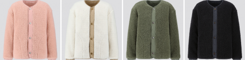 今年摇粒绒新款还包括【两面穿摇粒绒茄克 初上市价格249元】和【长绒摇粒绒外套 初上市价格149元起】。两面穿摇粒绒茄克的特点是一面可爱毛绒绒的仿羊羔绒,一面简洁利落的压线设计,一件单品打造两种风格造型,随心变装又兼具保暖性能。