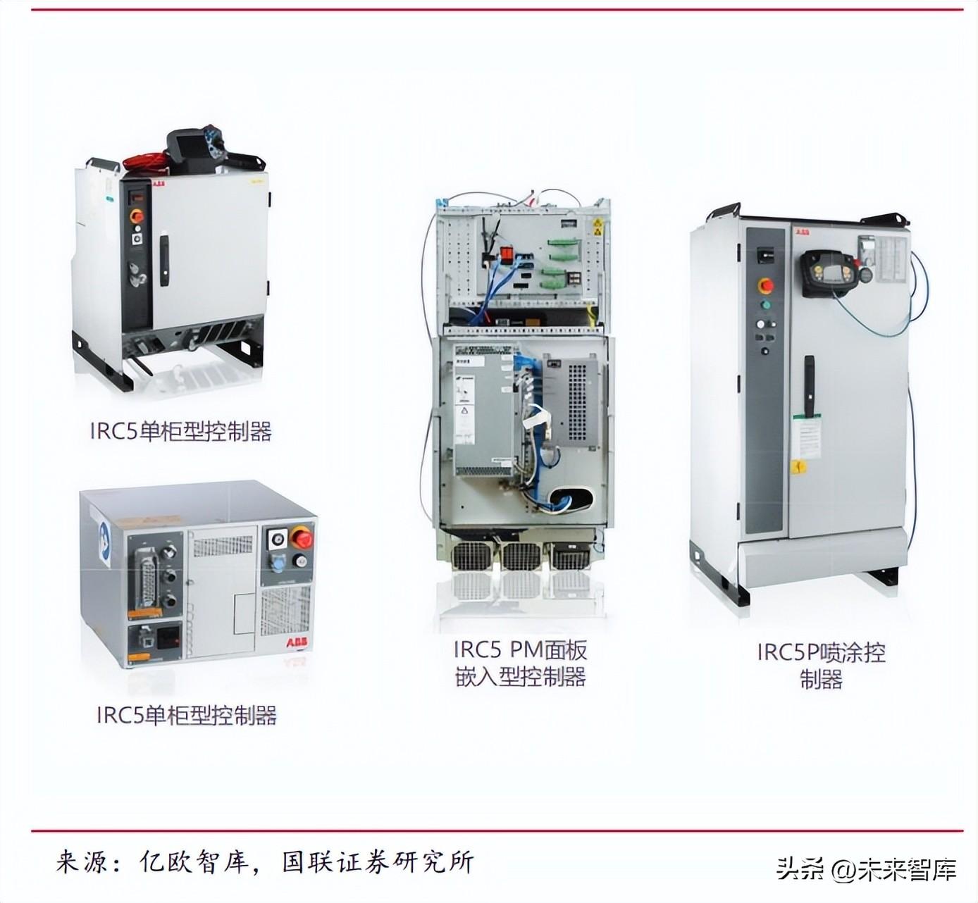 工业机器人控制系统分为硬件类控制器和软件类控制软件。控制器可分为上位主 控计算机和下位多轴关节伺服控制器,主控计算机负责下达指令以控制各伺服驱动装 置,实现对机器人的工作顺序、位置、运动速度、时间间隔的控制。工业机器人的控 制方式包括运动控制和力控制。运动控制主要控制机器人的位置,而力控制则控制机 器人末端执行器的作用力与力矩,主要用于会与环境接触的加工机器人、装配机器人。 控制器产品的精密性会极大影响机器人的工作表现,目前海外部分企业的控制器 产品在性能表现上较为领先,能够满足绝大多数应用的需求,国产控制器产品仍有较 多提升空间。