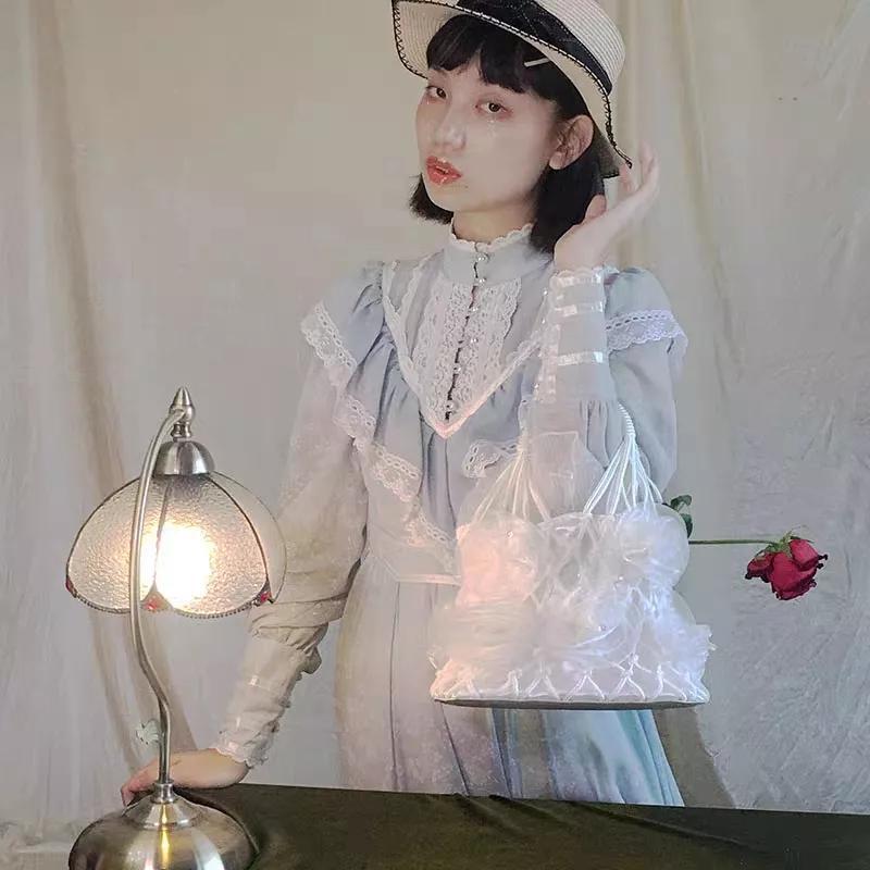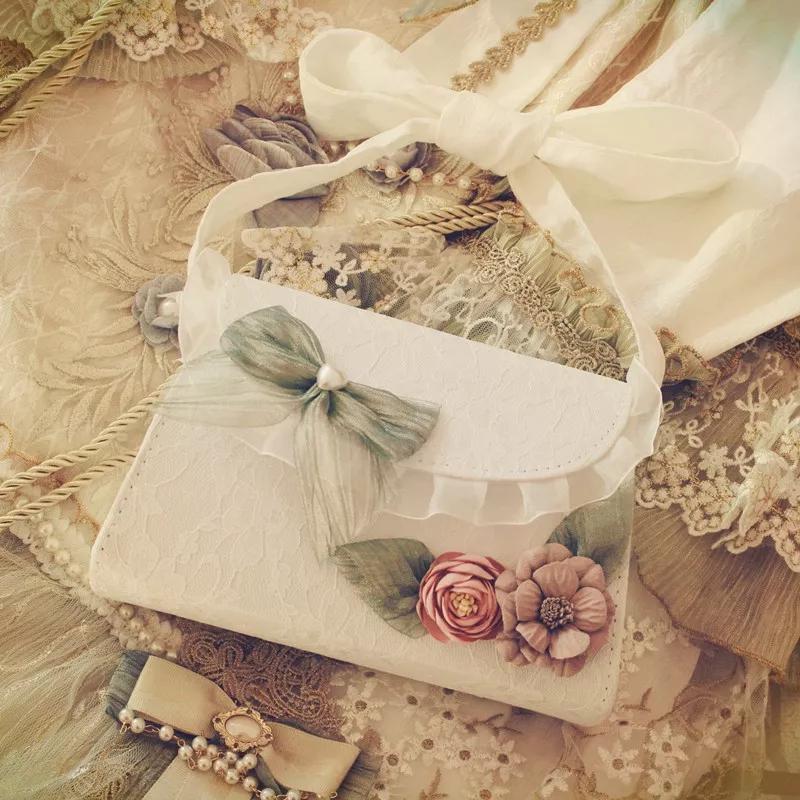 3.原创手作白色花嫁珍珠蝴蝶结单肩手提包¥69