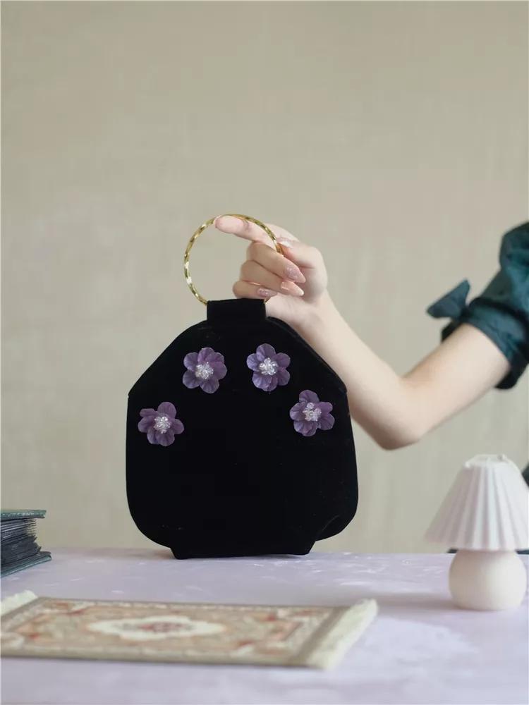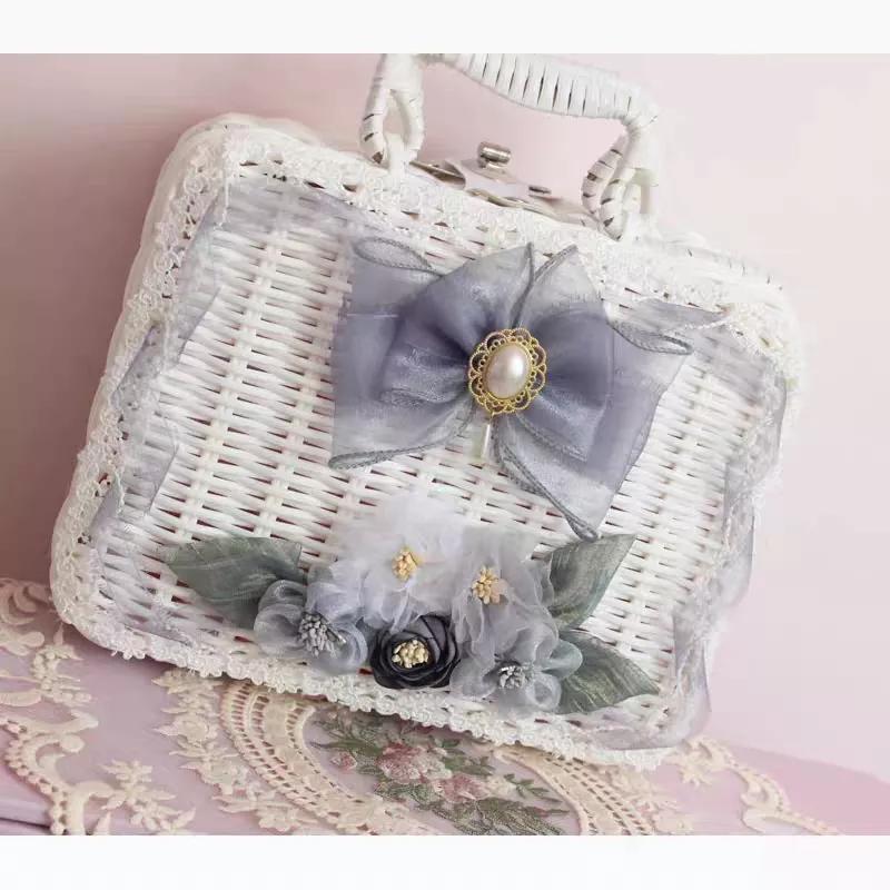 2.原创手作灰紫花朵茶会华丽藤箱¥79
