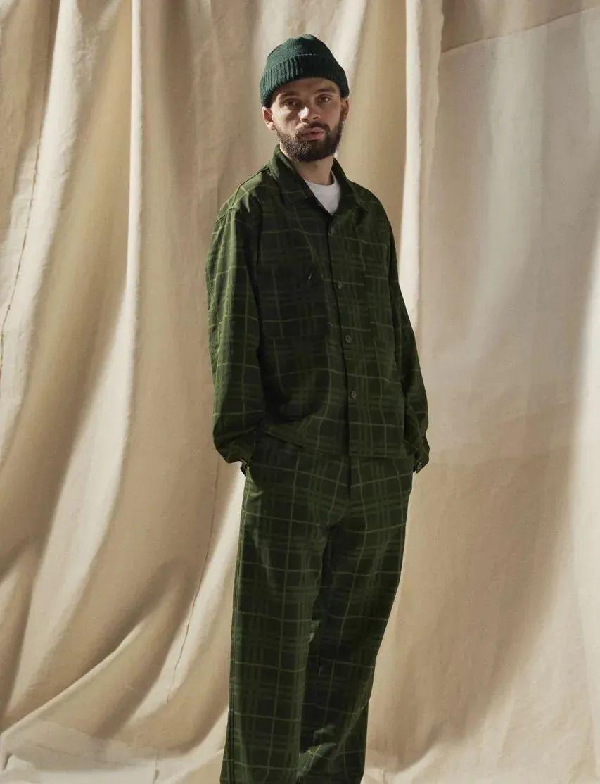 格纹款的俏皮感十足,更加凸显City Boy们的行走城市的慵懒。同样白色Tee内搭作为基底,略偏墨绿的格纹长裤与衬衫,来上一个针织小帽「封顶」,感觉必须到位。