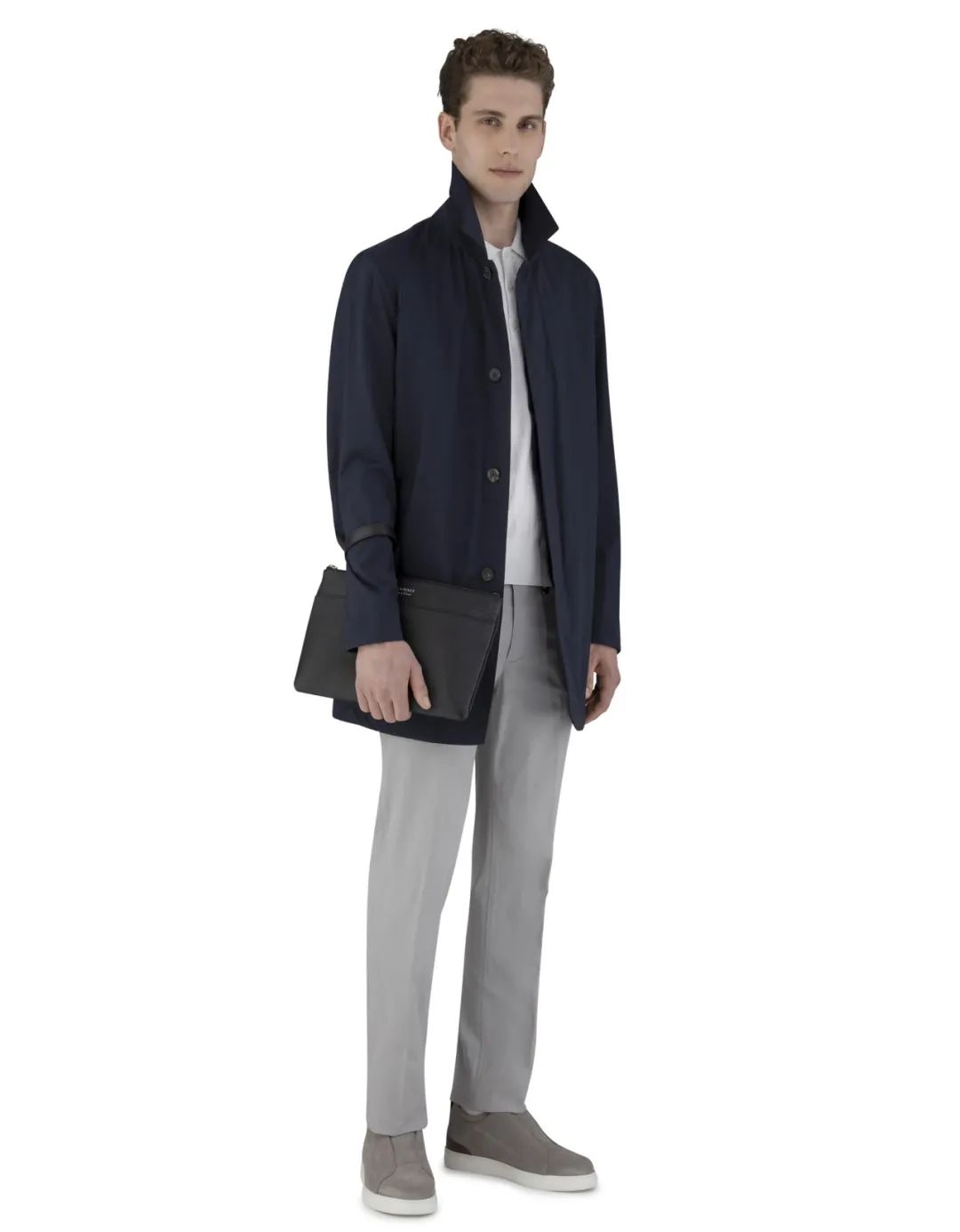 套西能够兼容不同场合,而雨天,你需要一件来自CANALI曾经作为主卖款的尼龙雨衣。