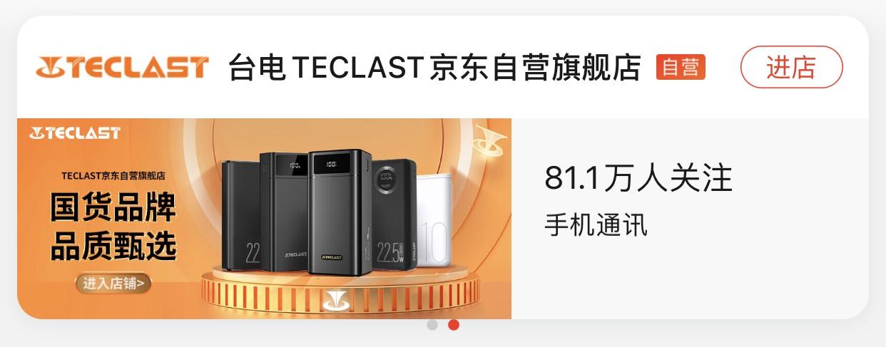 TECLAST台电店铺名称:台电 TECLAST 京东自营旗舰店,粉丝数 81.1 万。