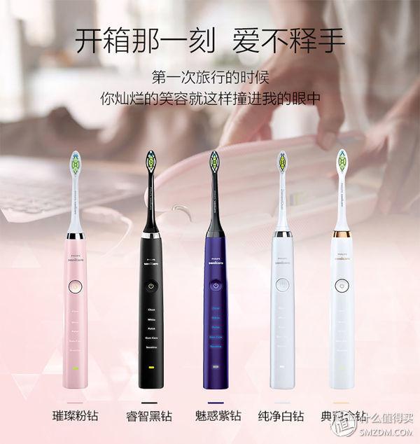 那我们顺着讲外观设计和工艺方面,HX9954和HX9352颜值相近,仅有一些小细节的差异。经典型HX9352在设计方面获得过IF大奖和德国红点设计大奖。这里推荐的是黑钻,还有一款粉钻的HX9362,价格会贵一点,但是众多女生青睐。此外,还有紫钻、白钻等型号,只是颜色或者配件的小差异。HX6730颜值低一些,价格摆着呢,就看你自己的预算吧,愿不愿意为颜值买单。