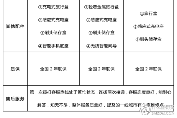售后服务方面,表格里也有介绍,飞利浦的售后服务确实是在电动牙刷领域里面出色,整体服务质量高。
