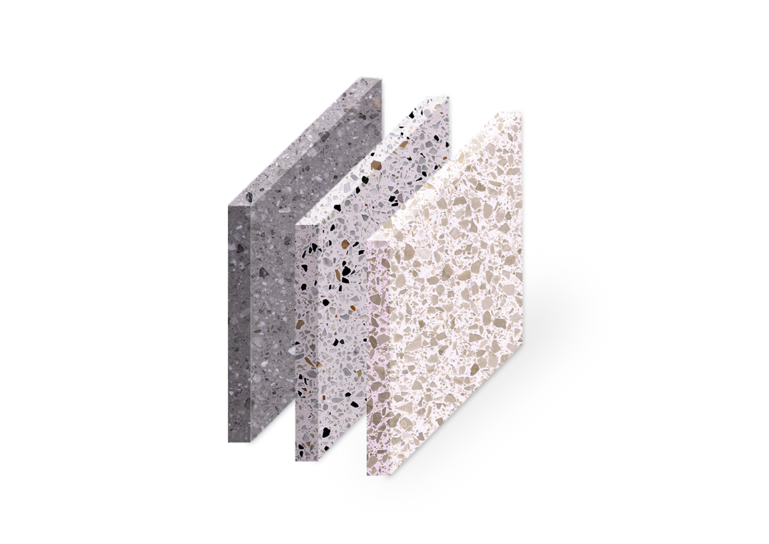 东星无机水磨石以大理石、花岗岩、贝壳等天然材料为骨料,结合进口白水泥与无机粘合剂,真空压制而成。引进意大利技术配方、生产设备及专业技术顾问指导加工而成。引进以后经过多次的改良,解决了孔洞、亮度等诸多问题,提升产品自身的防护性能。产品具有无树脂、免烧制,防火阻燃、抗紫外线强、自然亲肤、可异形,可定制等特点。因而,成为了许多公共建筑空间青睐的环保建材。