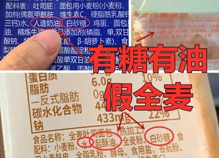 我为此特意去市场上逛了一圈,那些号称全麦代餐的面包,不仅用的全是小麦粉,脂肪奶油还一大堆,就这吃了不长胖,你会信?