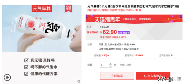口味上元気森林苏打气泡水除了卡曼橘味、白桃味、青瓜味三个口味以外,重要的举措是满足了消费者无糖好喝的需求。添加了赤藓糖醇,既了甜味又避免了热量,使其成为了一款无糖、好喝、不会产生负担的饮料产品。