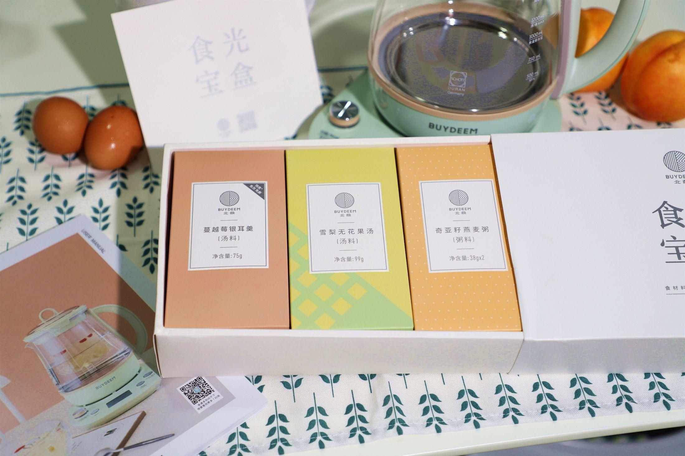 首先打开北鼎附送的食光宝盒,也就是食材,一共有三个,蔓越莓银耳羹、雪梨无花果汤、奇亚籽燕麦粥,三个类别的食材,因为近感冒咳嗽比较严重,就挑选了雪梨无花果汤试一下。