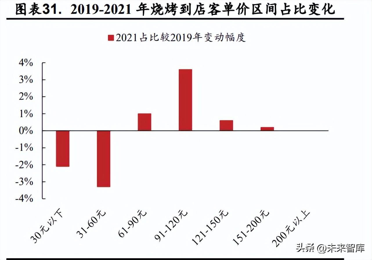 完善供应链体系可提高单店利润率。根据职业餐饮网数据,酒拾烤肉在 门店数达到 100 多家时自建了供应链体系,从食材到调料包均由仓储配送 中心统一配送,加盟商可享受较低的采购价格,单店的毛利率在 60%- 65%,高于烤串门店 50%的毛利率,烤肉门店由于不存在穿串环节,供应链 体系更加成熟,大大降低了食材成本,毛利率更高。净利率可达 30%,比烤 串直营店的净利率更高。 强社交属性用餐时间长,低端市场面临低翻台率困境。根据红餐网数 据,烤肉门店中有 45%客单价在 50 元以下,该类门店多为自助烤肉模式, 时限 90 分钟,与客单价较高的烤肉门店的用餐时长和理论翻台率趋同,但 是低端烤肉的客单价提升空间较小,而烤肉的强社交属性使得用餐时间较 长,翻台率不及同样标准化的小吃和快餐店,导致单店利润率较低。