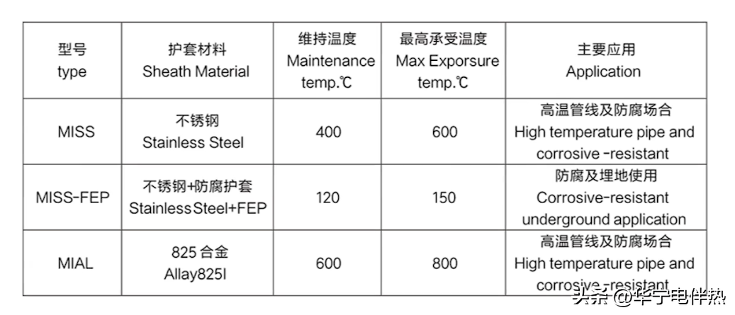 铠装电伴热通常是指矿物绝缘加热电缆。这款加热电缆是由金属线芯 ( 发热体 )、线芯周围紧密的环绕着矿物质氧化镁 ( 绝缘层 ) 及经过多次拉制过的金属管 ( 通常是铜、钢或是不锈钢、316L、825 合金等)构成。必要时可在金属护套外挤塑一层防腐聚全氟乙丙烯外护套。
