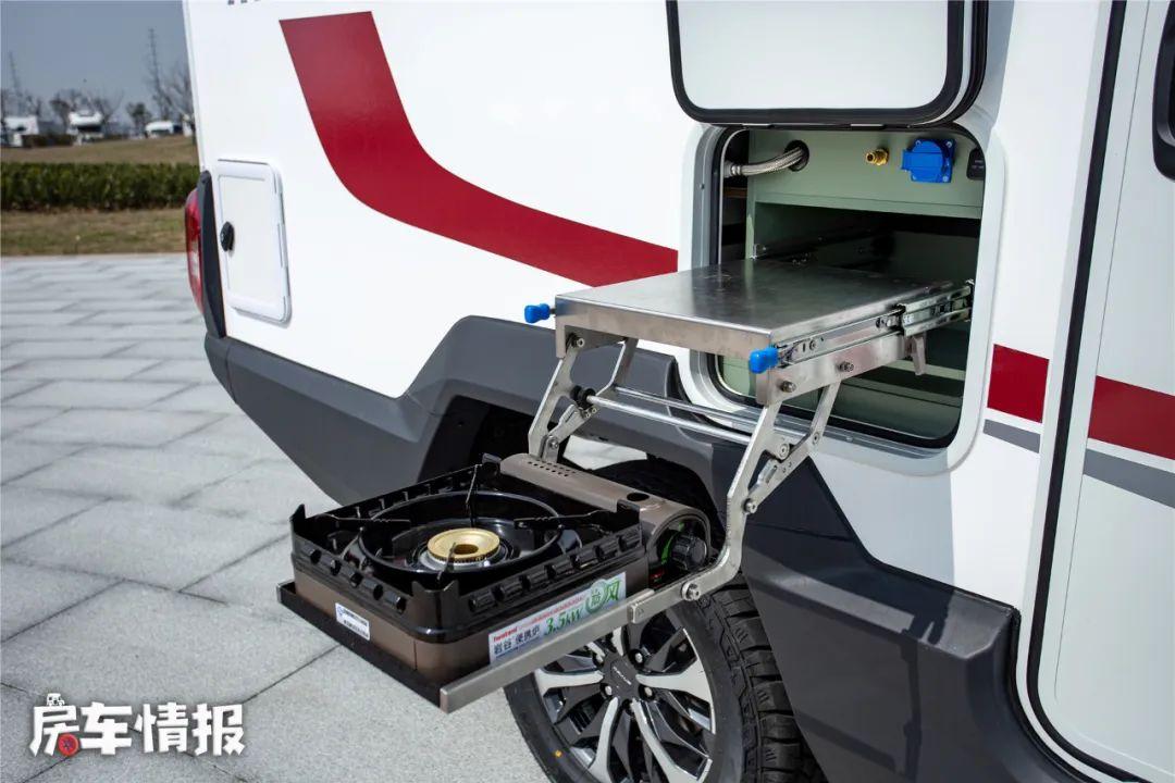 如果说颜值这东西是萝卜青菜各有所爱,那么在外部的功能上就能显现出一定差异了。自由炮的外部提供了丰富的户外使用设备,常规的遮阳棚、抽拉燃气灶、超大贯通式储物箱(A款)等基本上都有配备,日常使用起来便利性不错,基本上能够满足大多数的使用场景。