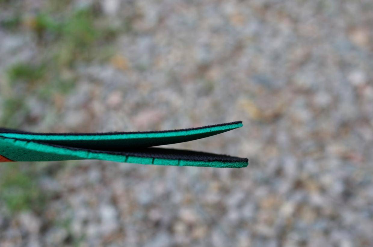 鞋垫,我感觉有些“丧心病狂”的轻薄了,薄薄一层ORYHOLITE材质,加上绒布表面,虽然透气防滑都没得说,但缓震能力和改良脚感这方面也太“职业”了吧。