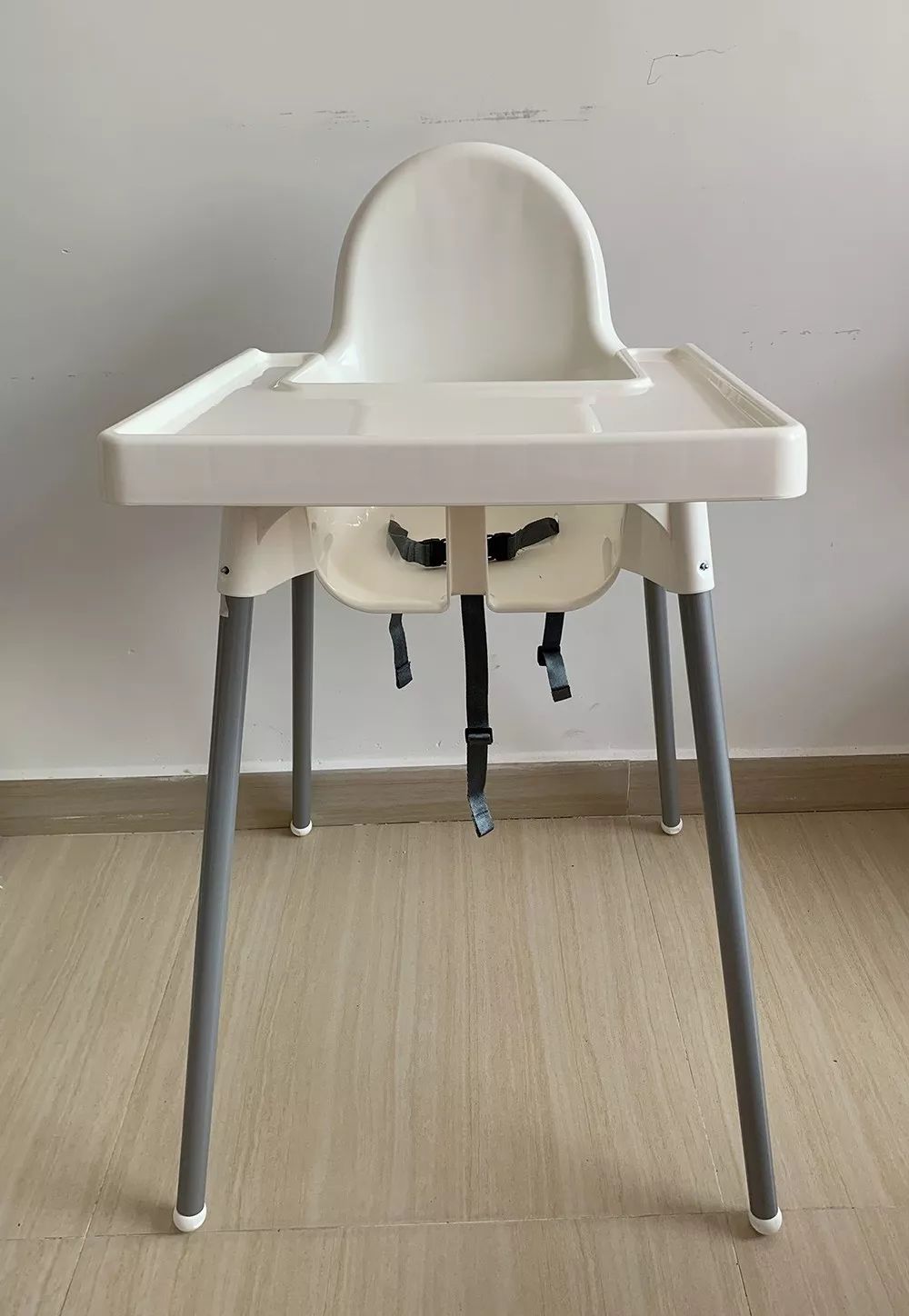 ①宜家:座椅高度/餐盘/靠背/脚踏均不能调节;带为两键式,按钮较小且紧,打开费力;净重量3.5kg左右,搬移较轻松。