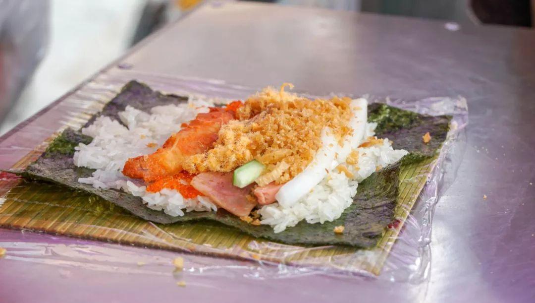 这是一家路边的小摊,这里的寿司是冒烟的,因为它真的是热的。老板每天都会开着三轮车,在固定的位置摆摊。