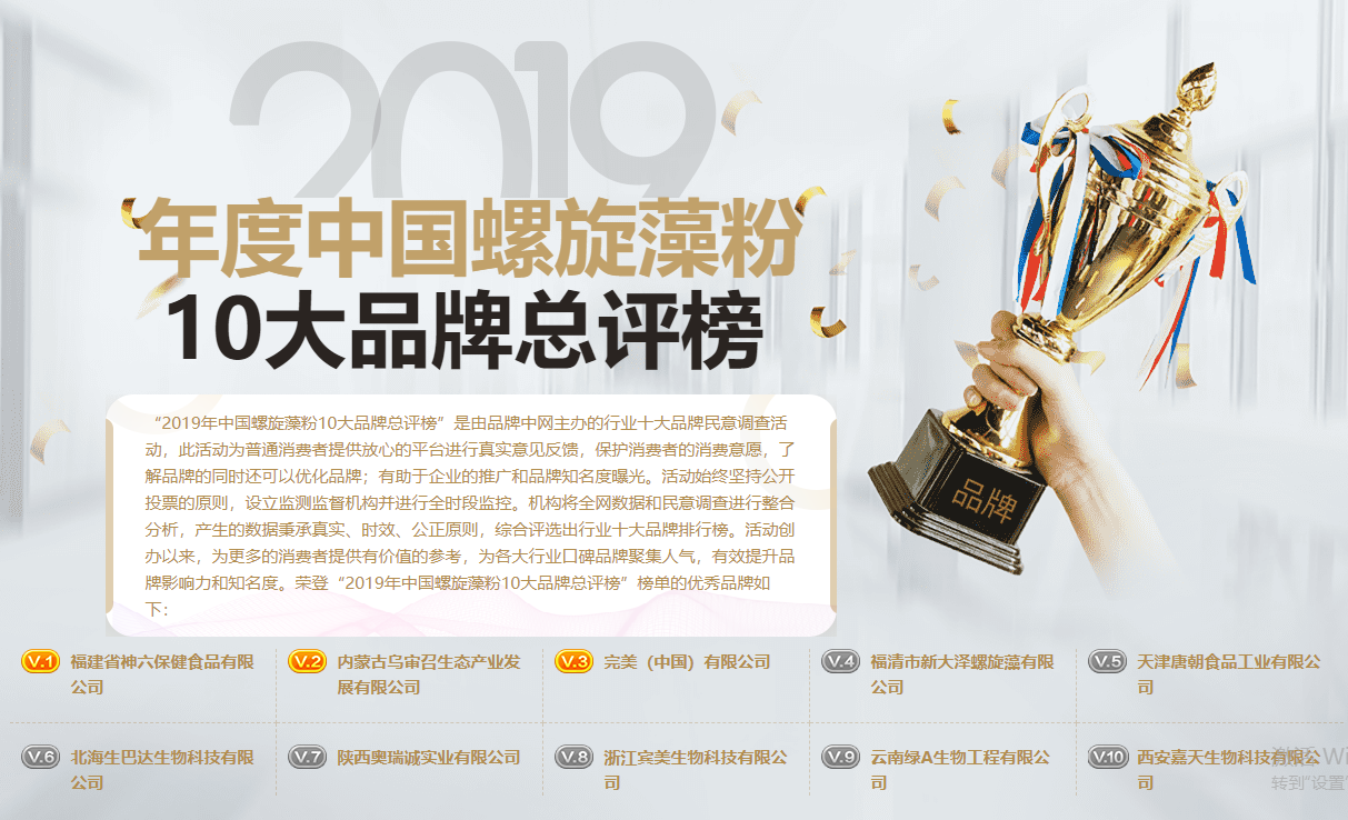 2019年螺旋藻粉十大品牌排行榜单: