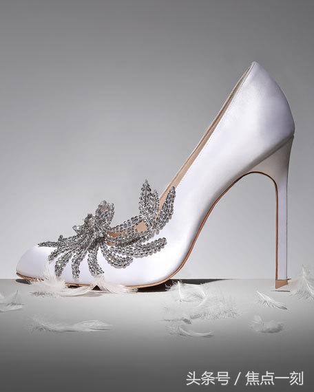 Manolo Blahnik可谓是“高跟鞋中的贵族”,能拥有一双Manolo Blahnik是每个女人的梦想,就连女星们也是它的狂热追求者而且多次在欧美影视中。如风靡的美国电视剧《欲望都市》、《暮光之城》,其实《暮光之城》里女主的婚鞋就是Manolo Blahnik。这款婚鞋采用白色水钻设计的图案镶嵌在鞋面上,唯美又高贵,细高跟的设计也给这款鞋增添了无限魅力。