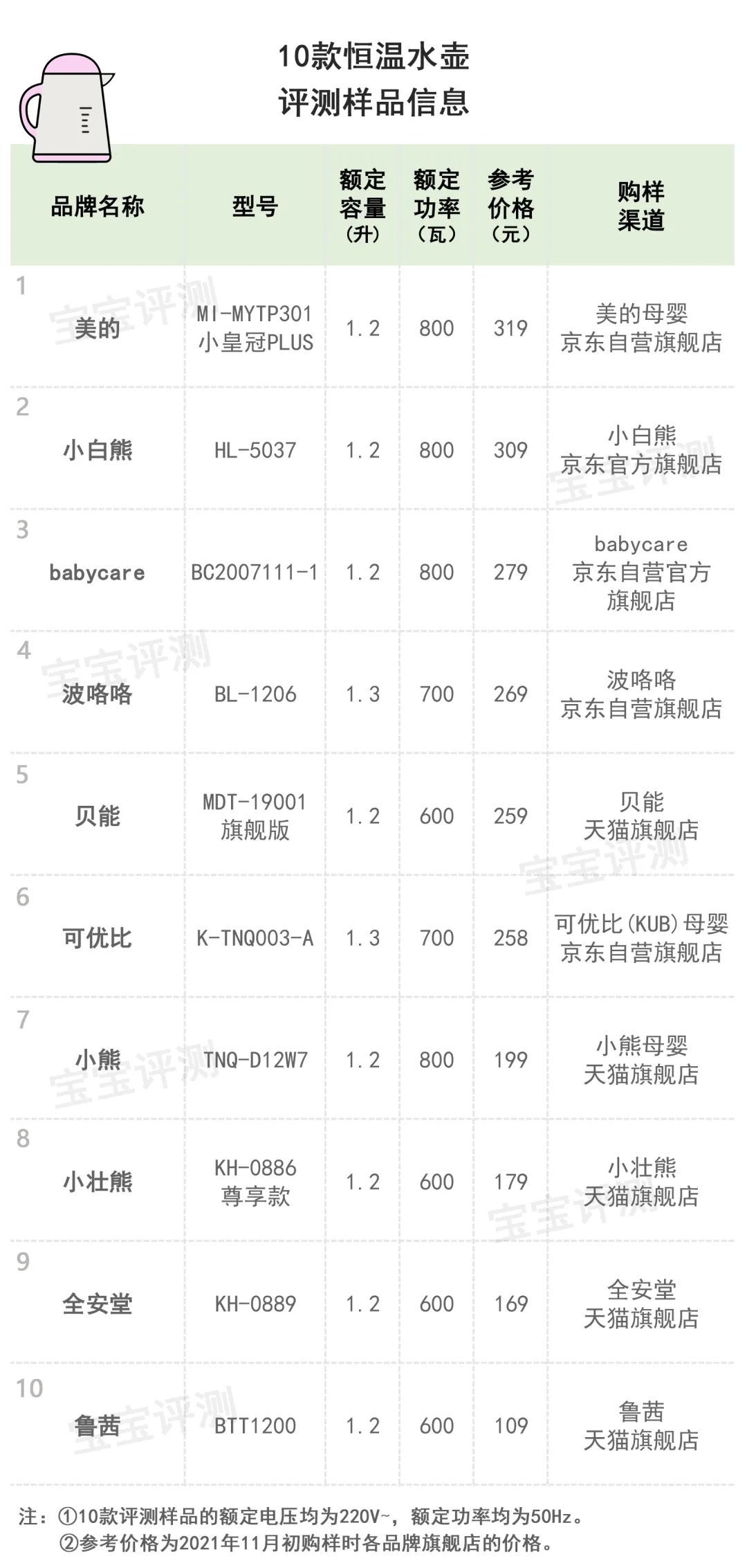 终,确定了以下10款恒温水壶作为本期的评测样品。(P.S.大家注意对应好型号!)