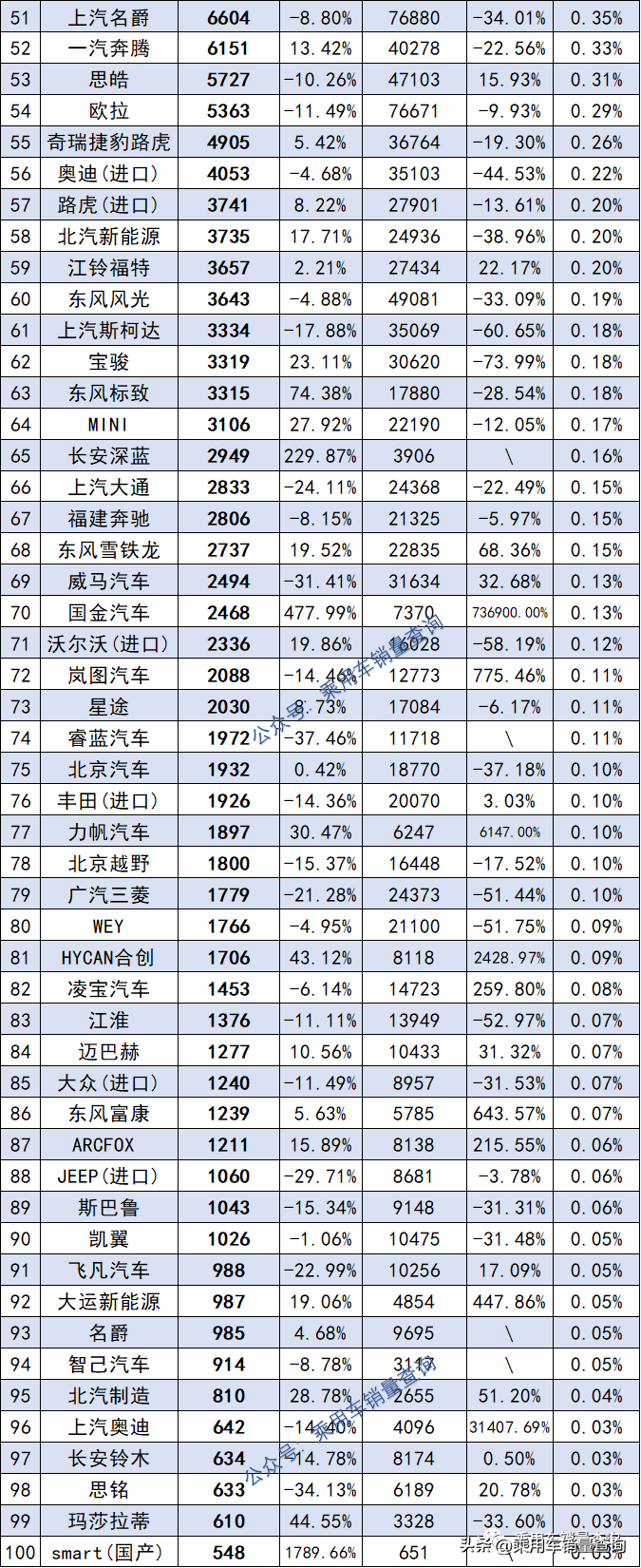 具体排名如下:(如需转载,请保留图片完整表头,则视为授权)