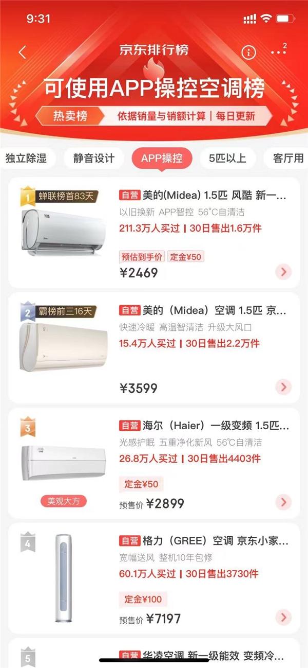 在寒冷的天气,空调舒适的暖风更能让整个房间暖洋洋。截至10月26日,本年度双十一预售家用空调品牌销量榜中,美的、海尔、格力等品牌一直占据前列,其中美的凭借风尊、风酷、酷金、家中产品等系列的高性能、高性价比稳居空调预售榜榜首,到目前依旧没有品牌能够撼动。