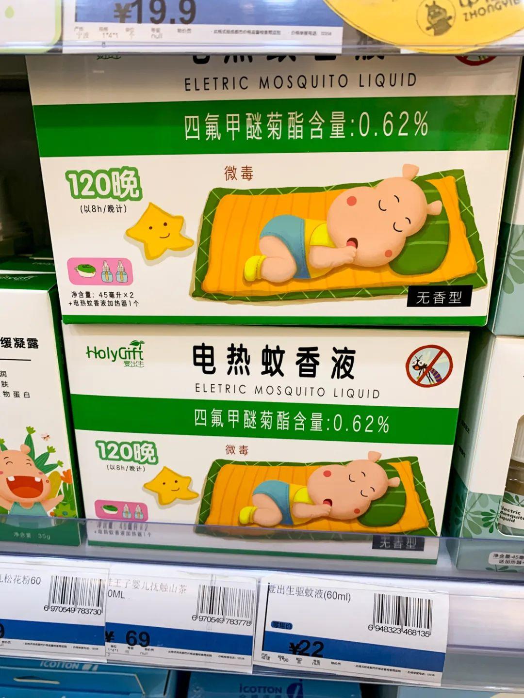 壹出生是大街上经常能看到的母婴店——中亿孕婴——所出品的一款电热蚊香液,其主要有成分为四氟甲醚菊酯0.62%,据店里的销售讲,这是今年新推出的产品,换了全新包装。45毫升装可使用60天(以每晚8小时计算)。 根据测评结果看,蚊香液和蚊香片的主要有成分为四氟甲醚菊酯和氯氟醚菊酯,哪一个果佳?根据研究文献,不同种类的拟除虫菊酯在杀蚊果上似乎没有的优劣之分。