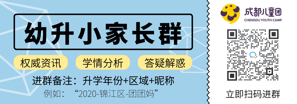 请扫描下方二维码,进入成都儿童团的“幼升小”or“小升初”家长群,不仅可以和一群的父母们交流心得,更有专业记者为你解答。