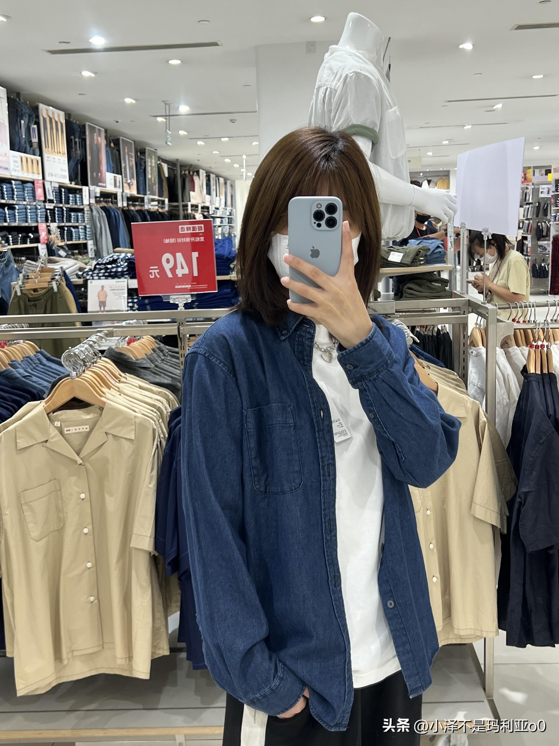试穿感受:以前一直觉得丹宁色才是YYDS,这次试穿浅蓝色,又是不同的感觉。看着比较硬挺,其实穿上身还是很柔软的。我试穿的是M码,内搭T恤刚刚好,但是好纠结要不要换大一码,秋天可以套一件卫衣。