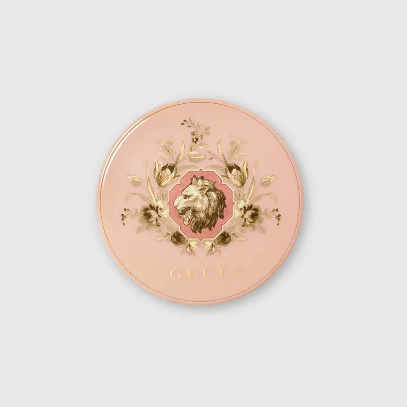 适合敏感肌在内的所有肌肤类型。质地轻盈不厚重,与肌肤紧密贴合,打造光采妆。叠加使用亦可达到从轻度到中度的遮瑕果,具有SPF 22/PA++防晒、抗污染和抗蓝光等特性,可以帮助肌肤抵御来自日光等外界侵害 。配方中蕴含乙二醇和甘油构成的保湿复合物,可以24小时长深度滋润肌肤。同时,黑玫瑰精油成分具有抗氧化的功。牡丹和小苍兰的花香糅合水性柑橘与轻柔麝香气息,散发出兼具复古与现代风格的香调。采用植物性配方,不含动物成分、动物副产品或其他动物源性成分, 淡粉色的外壳饰有一幅被花环围绕的狮子图案,搭配金色Gucci字母标识,由品牌创作总监亚力山卓·米开理(Alessandro Michele)精心设计 。包装盒内部配有镜子和柔软粉扑,上妆轻松,方便随时随地补妆。