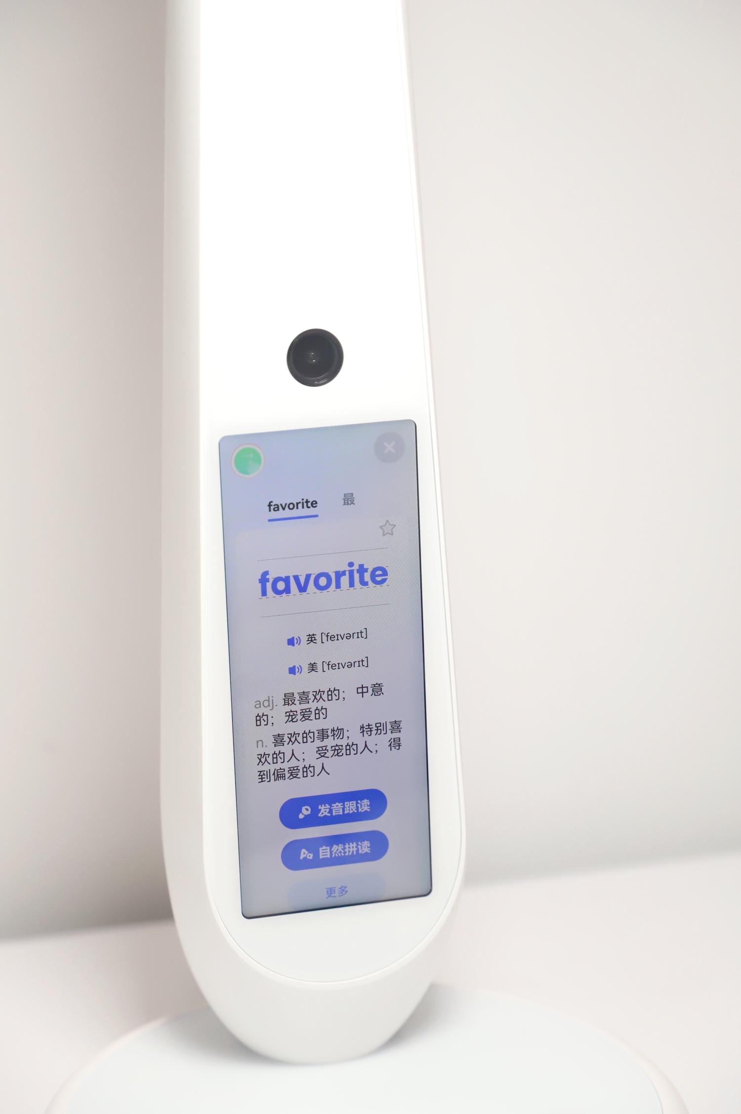 其中实用的当属“指尖查词”和“句子精读”功能,之前我在其他品牌智慧学习产品中也体验过指尖查词功能,但感到有道智能学习灯的查词速度更快,基本是手指刚落在单词处,摄像头就能快速识别并通过屏幕反馈出查询结果,整个过程仅需0.5秒,中英文都能查询。