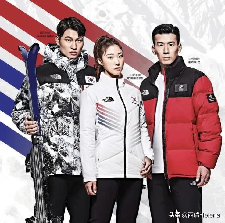 韩国代表队战袍——The North FaceThe North Face是韩国冬奥会的合作品牌,该品牌为韩国代表队共设计了三款运动服:韩国国旗的红蓝两色幻化成象征速度与力量的条纹点缀其上,其中白色领奖服延续了2020东京奥运会领奖服的设计,另外一款红黑配色的羽绒服仅仅是加上了韩国奥委会LOGO;冲锋衣的设计算是有些亮点,将韩国的山川地貌绘制在上面。本届冬奥会共派出了63名运动员参赛。