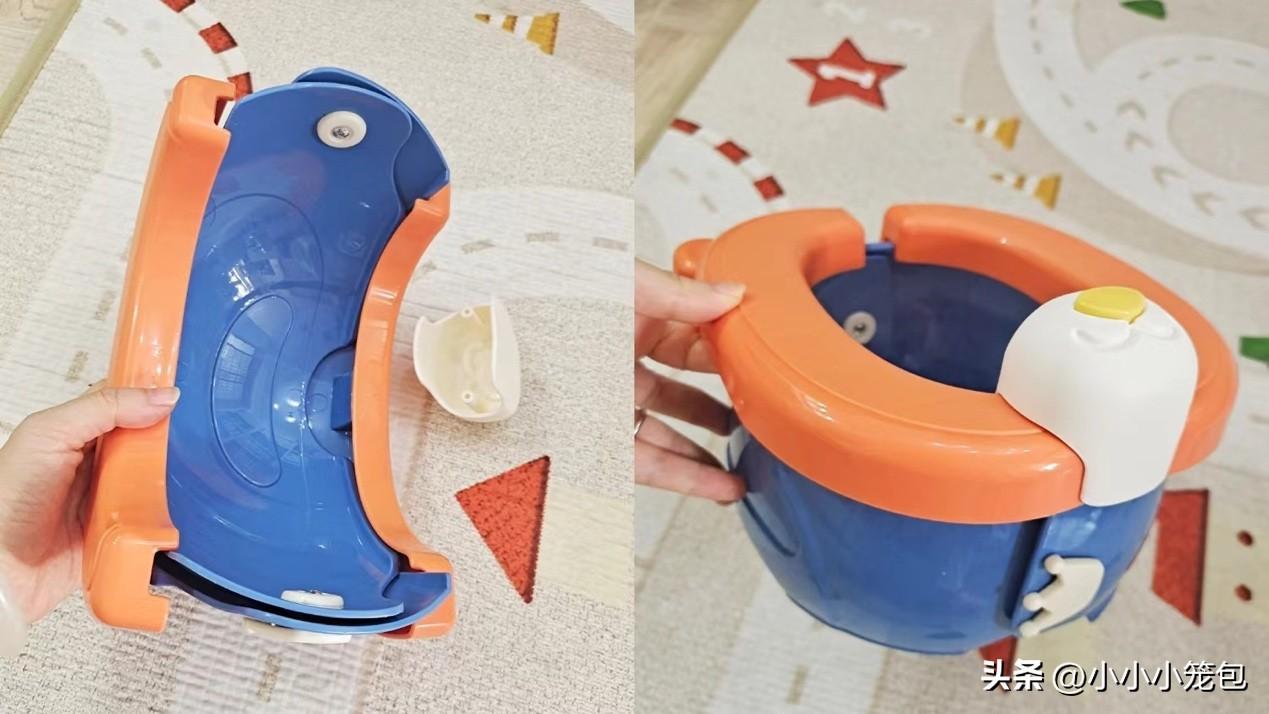 折叠小马桶——出行用的小马桶,折叠起来很小一个,携带起来方便。虽然产品的塑料感有点重,但毕竟偶尔才会用上,所以便宜好用就行。