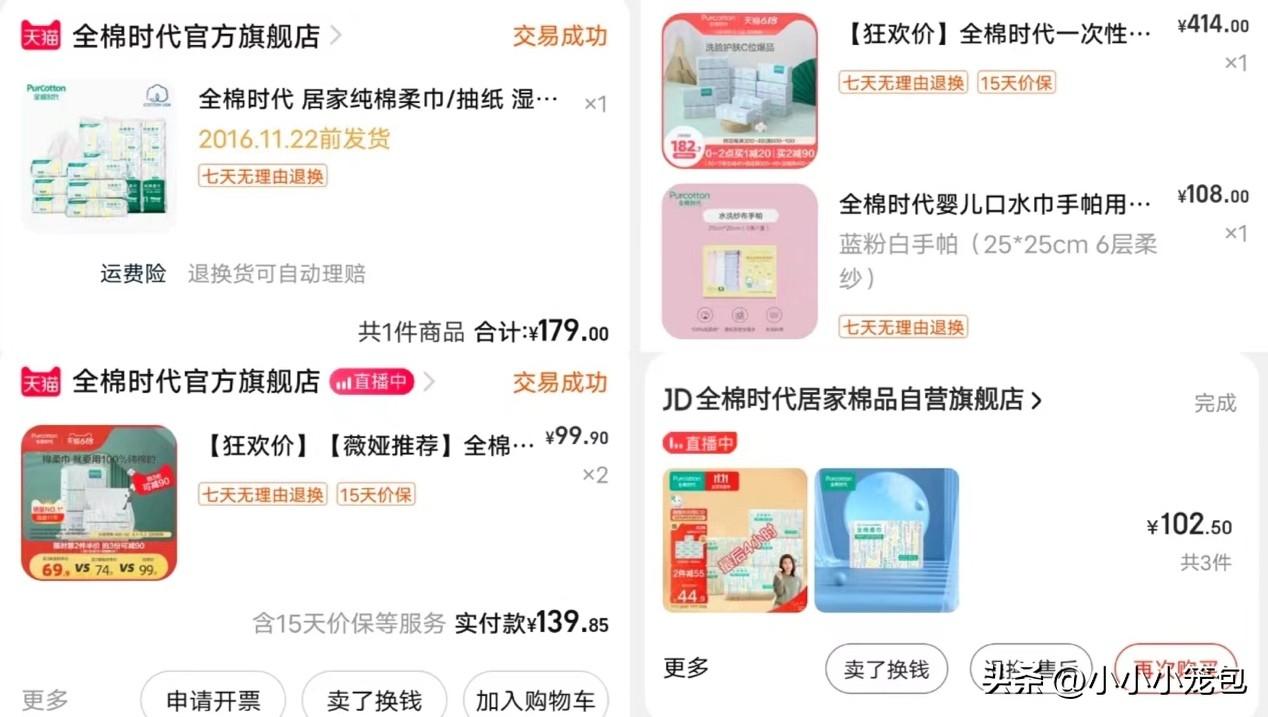 我早接触全棉时代是从2016年开始入手它家的棉柔巾,到现在已经整整回购了6年!虽然期间我也有试过几个其他品牌的棉柔巾,但终还是换回了全棉时代,每年618和双11必囤的就是它。