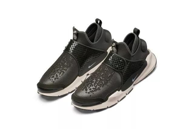 由NikeLab与意大利运动户外机能品牌Stone Island携手打造的Sock Dart Mid。在设计上以更加适合冬季的中筒轮廓示人,并采用透气网眼结合优质皮革构成鞋身,同时搭载鞋头部的不规则防水涂层营造前卫视觉感,以呼应Stone Island在机能领域的创新精神。