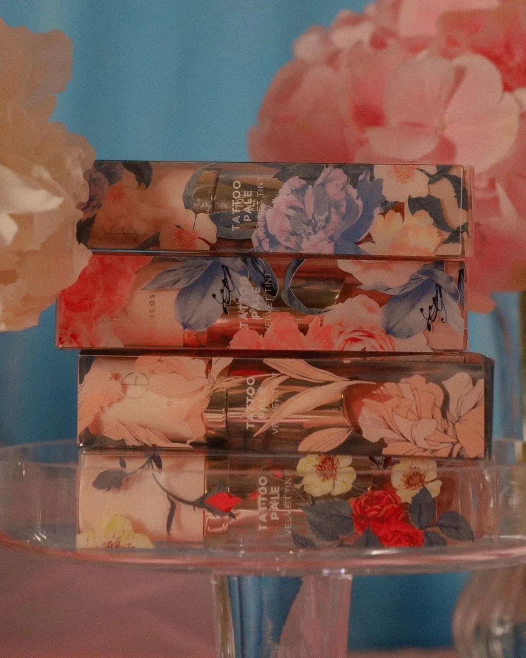 该系列包含了10个色号的滋润口红(28美元,RMB200元)、7个色号的珠光唇蜜(22美元,RMB157元)和5支唇线笔(14美元,RMB100元),色号大多偏裸色、粉色这样的浅色,每支口红和唇釉都是以花朵的名字命名的,比如有Daisy(小雏菊)、Camellia(山茶花)等。