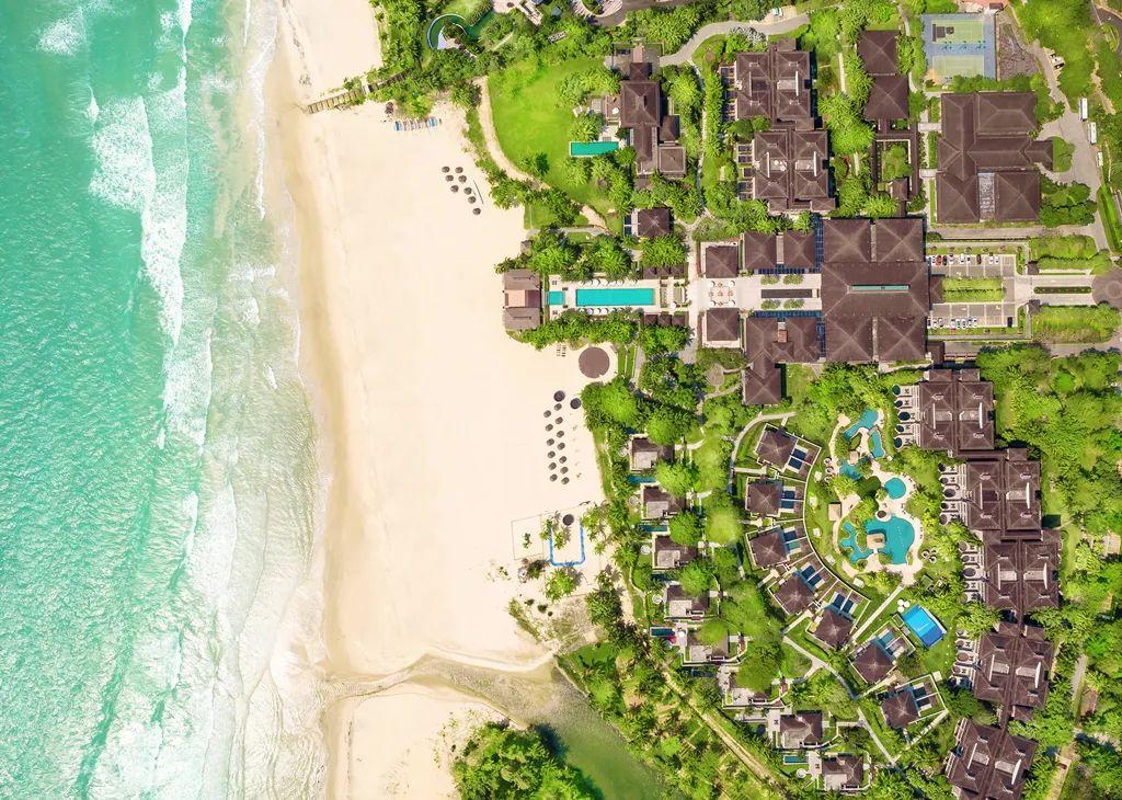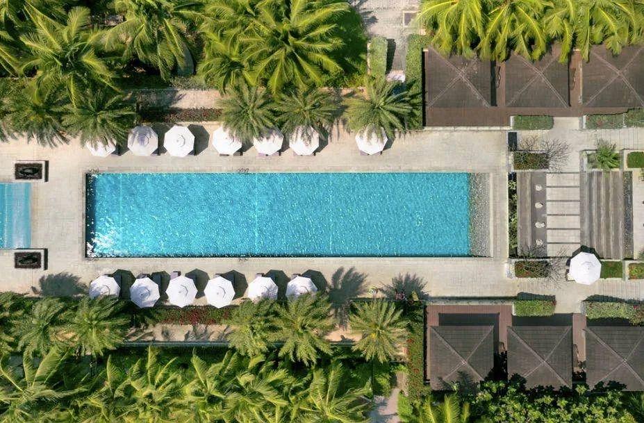 石梅湾艾美则以独特的东南亚园林风俘获人心,保留湾内原始自然风光,并融入黎族文化,建起了一座座泰式传统建筑风格的别墅和蓬屋群。