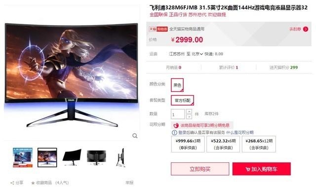 飞利浦 328M6FJMB产品类型LED显示器,广视角显示器,曲面显示器产品定位电子竞技屏幕尺寸31.5英寸佳分辨率2560x1440屏幕比例16:9(宽屏)高清标准2K面板类型MVA背光类型LED背光动态对比度5000万:1灰阶响应时间4ms亮度300cd/㎡可视角度178/178°显示颜色16.7M色域NTSC:100%刷新率144Hz控制方式按压按键语言菜单英文,德语,法语,意大利语,西班牙语,俄语,葡萄牙语,土耳其语,简体中文视频接口HDMI×2,Displayport其它接口音频输出机身颜色黑色外观设计2mm外边框,屏内矩阵条6mm产品尺寸713×606×286mm(包含底座)产品重量8.56kg(净重)12.16kg(毛重)底座功能升降壁挂支持(100×100mm)电源性能100-240V交流,50-60Hz节能标准二级安规认证CCC,CECP,CEL,WEEE其它性能飞利浦不闪屏技术,LowBlue模式设置,保护双眼预设多重不同风格游戏场景,通过快速访问OSD,玩家可以方便的在不同模式间切换其它特点支持AMD FreeSync技术,可以有减少画面卡顿及撕裂现象搭载Ambiglow流光溢彩技术,向桌面不断同步投射屏幕当前颜色的光源上市时间2017年04月包装清单显示器 x1电源线 x1信号线 x1保修卡 x1说明书 x1保修政策联保,享受三包服务质保时间3年质保备注整机3年,带TV功能整机1年,部件3年客服电话400-880-0008电话备注00:00-24:00详细内容售后服务由飞利浦厂商提供,飞利浦依据用户购买飞利浦产品时由经销商提供的注明购买日期、经销商名称和产品型号的原始发票或现金收据给用户提供保修服务。保修的有期从您购买该产品开始算起,直到官网的保修表里写的相应产品或者部件的保修期限。如果产品在保修期限内,因不良材料和/或工艺而产生的任何故障,由飞利浦免费维修或更换产品。进入官网>>飞利浦328M6FJMB显示器是一款曲面屏专业电竞显示器。该款显示器还采用了不闪屏技术和低蓝光模式,为双眼的健康保驾护航。该款显示器定位的消费群体是高端的游戏玩家,如果喜欢的小伙伴可以点击进入天猫商城查看。