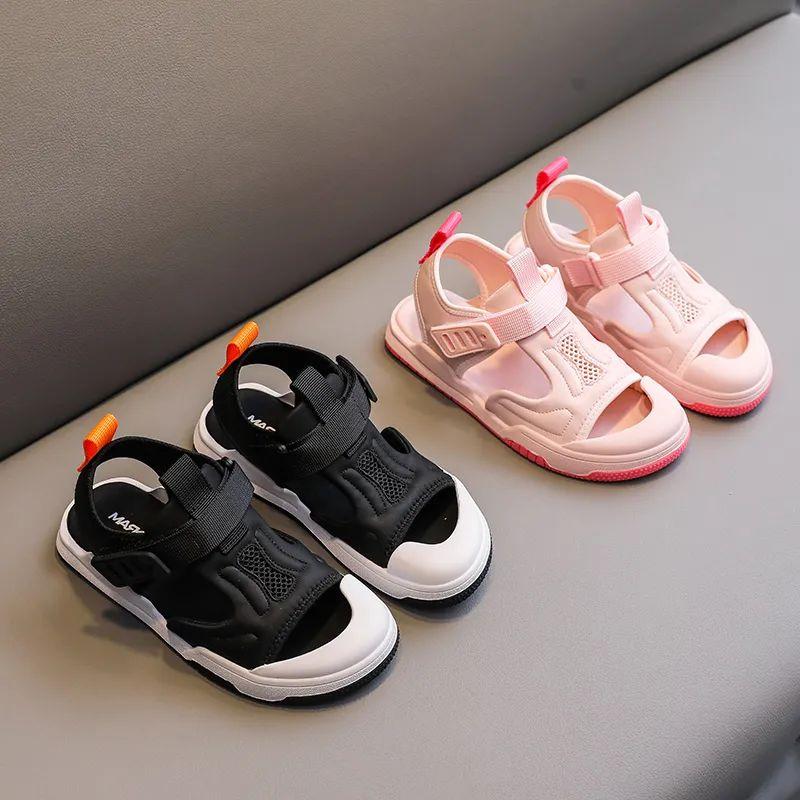 这款马克华菲的时尚包头凉鞋做了两个颜色,黑色和粉色两色,男宝可以选择黑色,大气百搭,女宝黑色粉色都可以穿,不过粉色更清新。