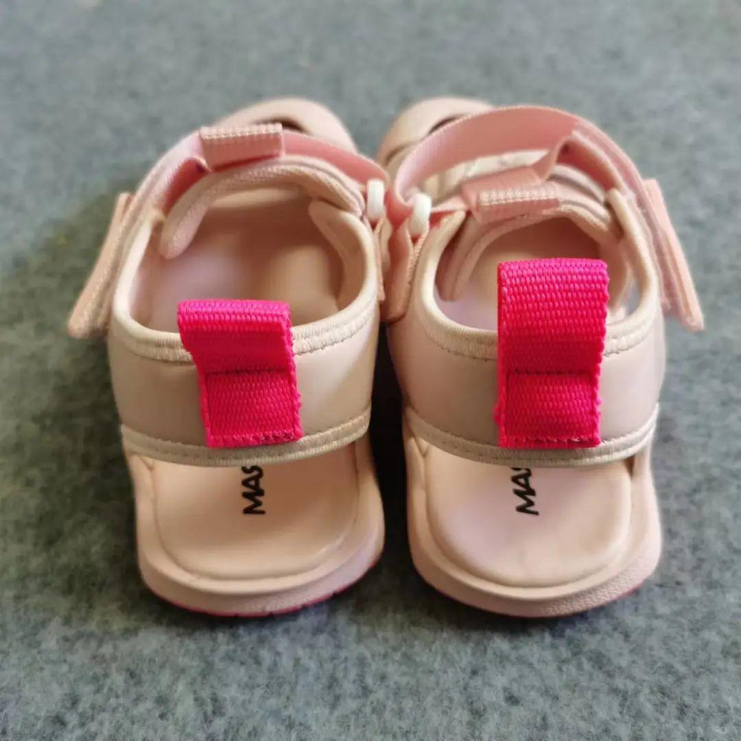 鞋底采用耐磨的橡胶材质,夏季孩子玩水不容易滑倒,粉色采用玫红色鞋底浅粉色鞋面更甜美俏丽。