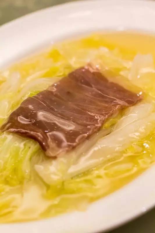 拿位后进里,餐厅装潢属典型的旧派格调,符合多年来港产片中的老式酒楼形象。翻开菜单,主要以京沪菜式为主,果真是豪华餐厅组别,鲍参翅肚样样齐全。但点餐经理靠谱,看我们两人且带着Baby Li,推荐的每一道都属家常菜式,管饱却也是上海菜经典。