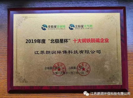 2019年,政策层层加码,工业烟气排放标准不断收紧,烟气治理市场竞争如火如荼。 北极星环保网、北极星大气网作为行业门户网站,应国内众多烟气治理企业诉求,举办了2019“北极星杯”十大烟气治理企业评选活动。 以公开透明、客观公正的投票方式,评选出2019年在我国烟气治理产业发展过程中涌现出的企业代表。 江苏朗润环保科技有限公司凭借其二十余年年来在钢铁脱硫脱硝领域的卓越业绩和良好信誉,在入围企业中脱颖而出。 本次获奖,既是行业对江苏朗润环保科技有限公司,一直以来在钢铁除尘,脱硫,脱硝,脱白等技术和品牌建设成的认可,也是一种激励,在荣耀光环下,朗润环保将继续努力,创新治理技术,提升产品品质,为客户提供更优质的服务!