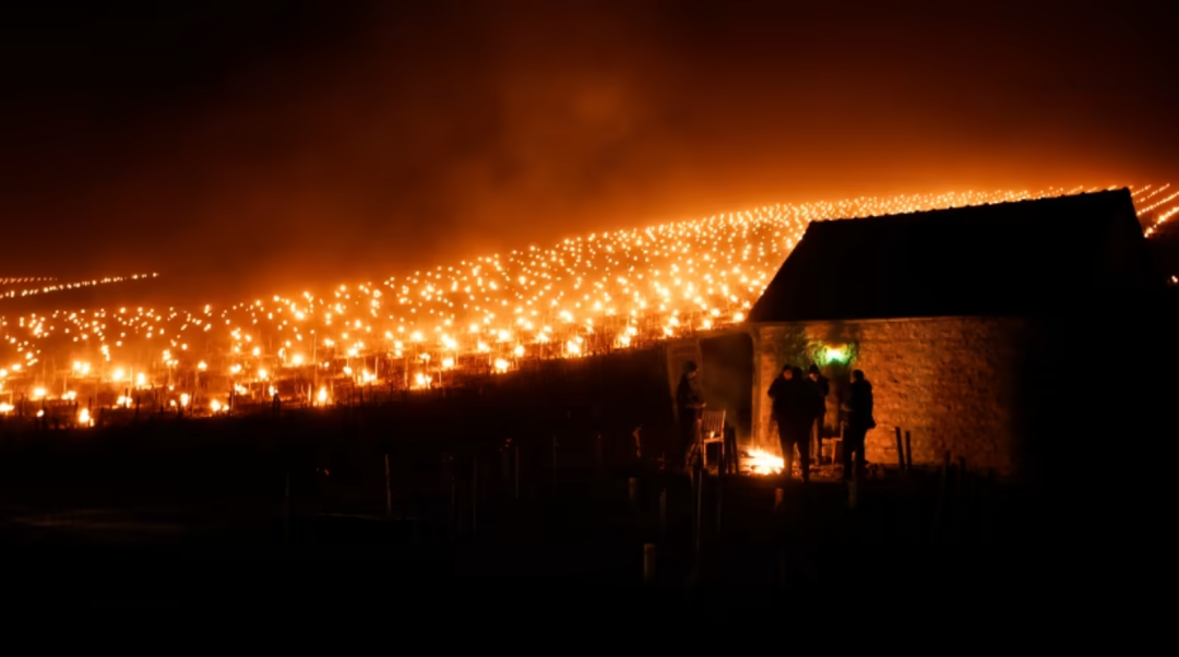 4月初勃艮第北部多处遭遇霜冻,只能引火为葡萄藤驱寒
