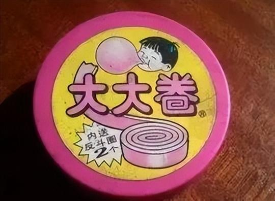 当时稀罕的就是大大卷了:有个类似胶带切割器的粉色盒子,想吃泡泡糖的时候就拿出来切一小段。《数码宝贝》很流行的时候,糖纸上还会印暴龙兽。