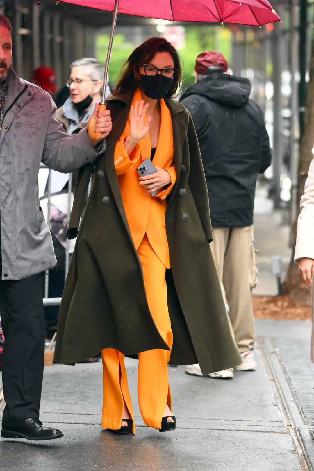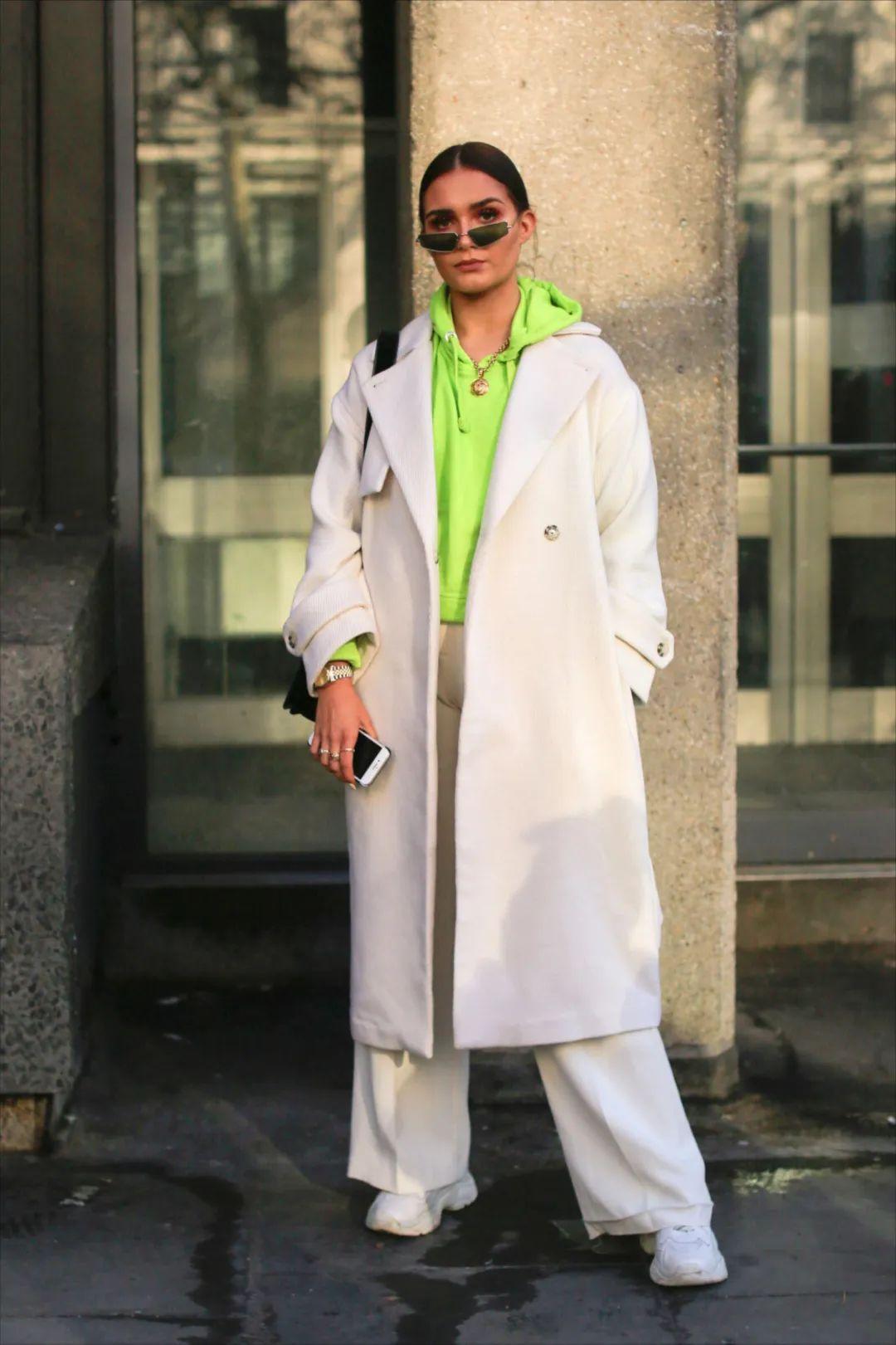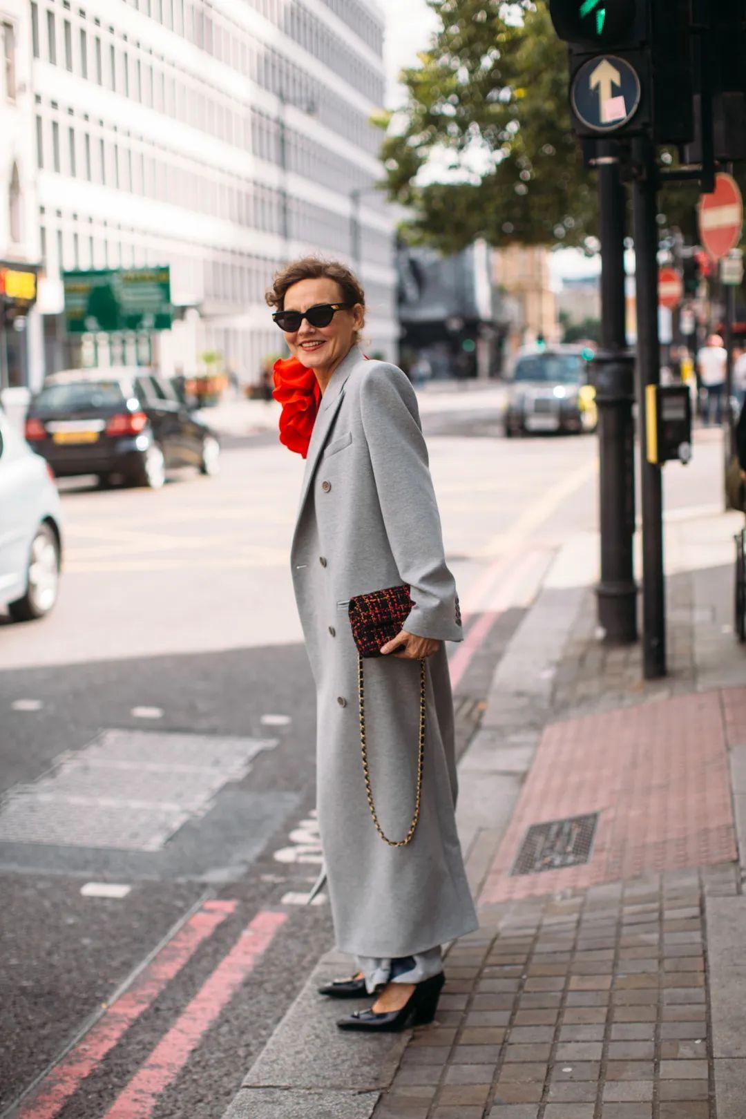 特别对那些总觉得自己到了冬天会变臃肿的女生来说,肩线和腰线剪裁都很硬挺的西装大衣能让你看起来更加高挑、挺拔,精气神儿也会改良很多。而且它还不挑年龄,包容度很高。