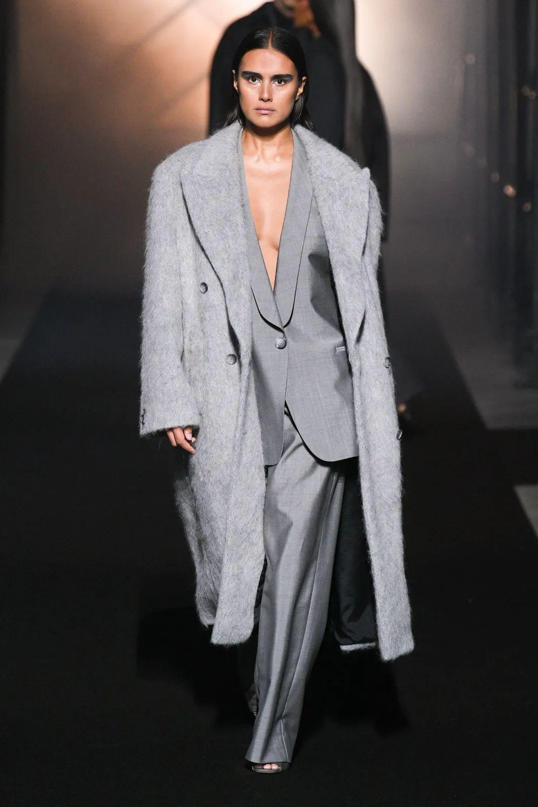 近不是有一种叫“双开门冰箱”的名品身材开始走红了吗?其实外套也有这个趋势,西装大衣在观感上就感觉强势逼人,可以展现女性的力量型性感。