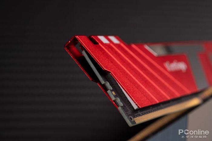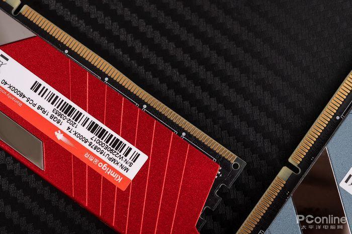 通过散热马甲于PCB基板的缝隙可以看到内部有导热硅胶做热量传导,芯片工作时所产生的热量透过散热垫传导至散热马甲,可使表面温度降低10%以上,保障内存的稳定运行。