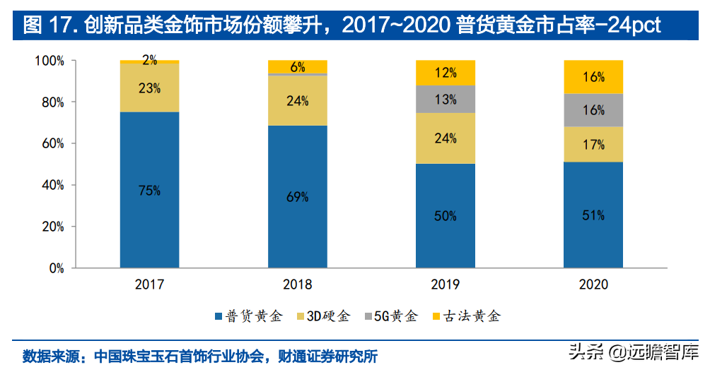 为了满足不断变化的消费需求,越来越多珠宝企业改进黄金生产技术、创新加工工艺,诸如古法金、3D 硬金和 5G 黄金等多种黄金饰品品类先后被推向市场。