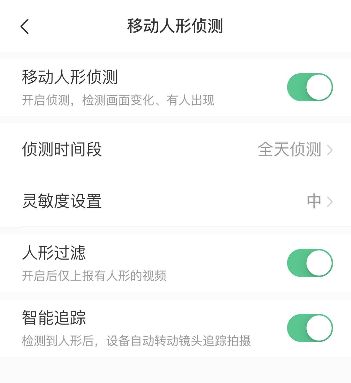 很多家庭养了猫狗宠物,宠物进入摄像头监控区域会触发摄像头拍摄和推送通知,开启AI人形侦测过滤后,就可以只拍摄有人形的视频,手机也不会频繁收到因宠物经过引起的警报推送了。